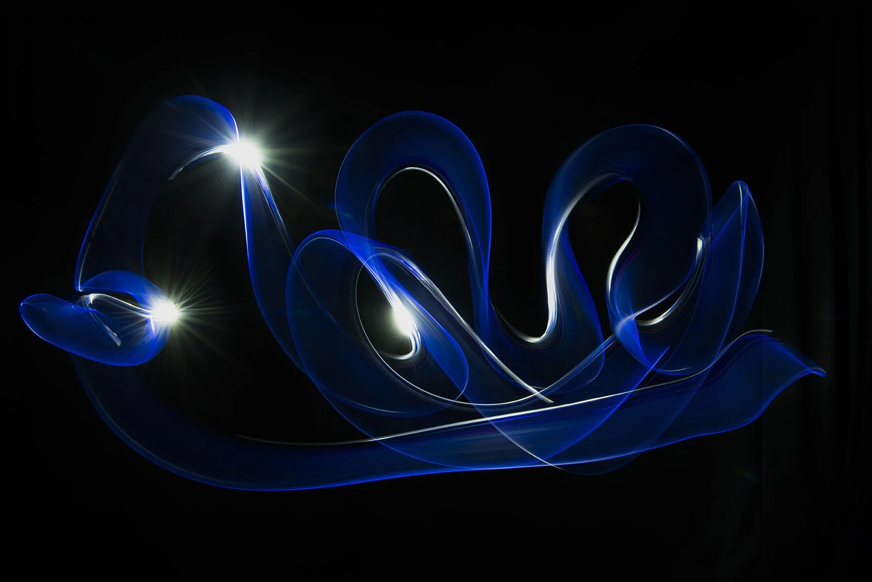 Abstract blue light trails and flares on black background